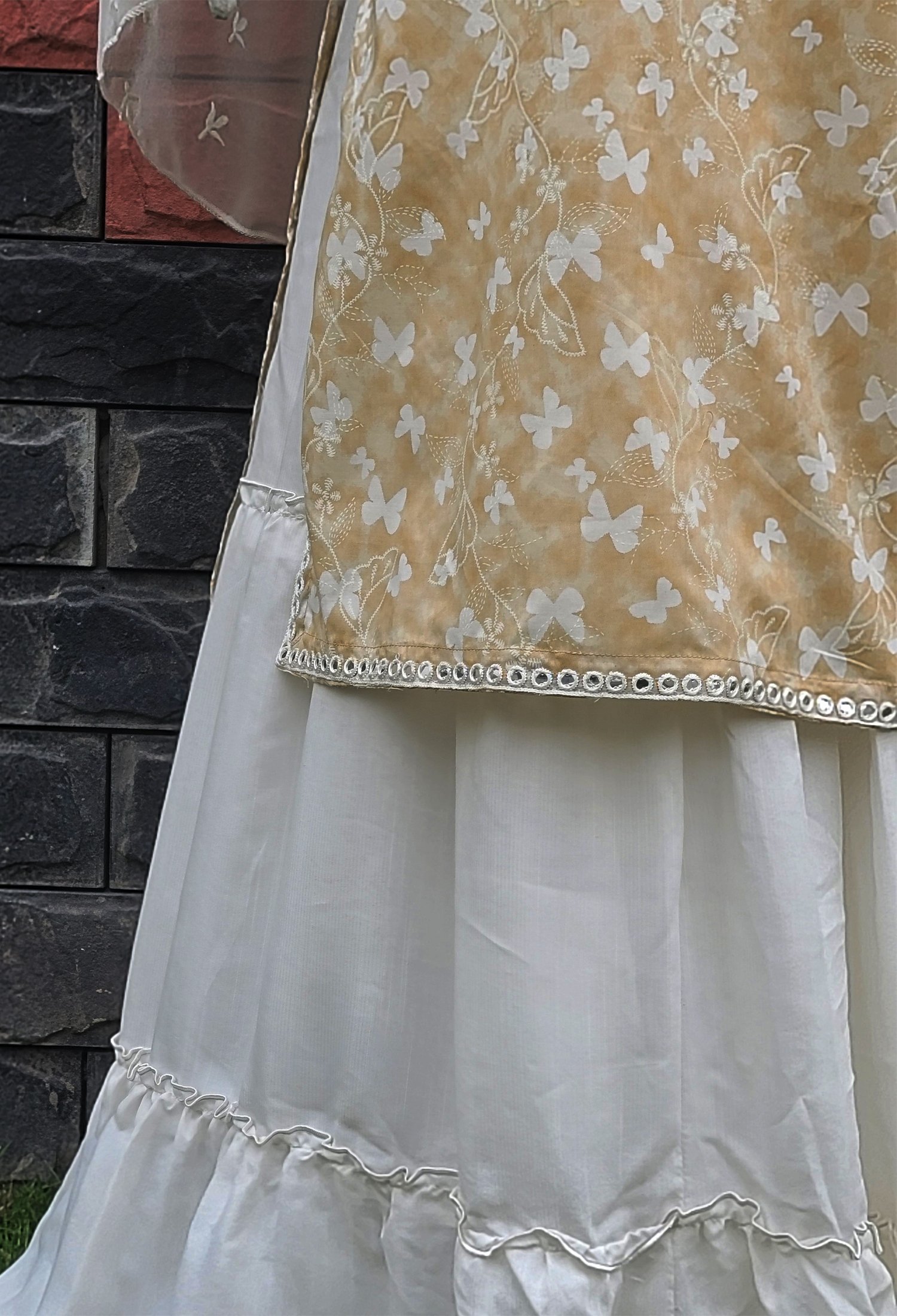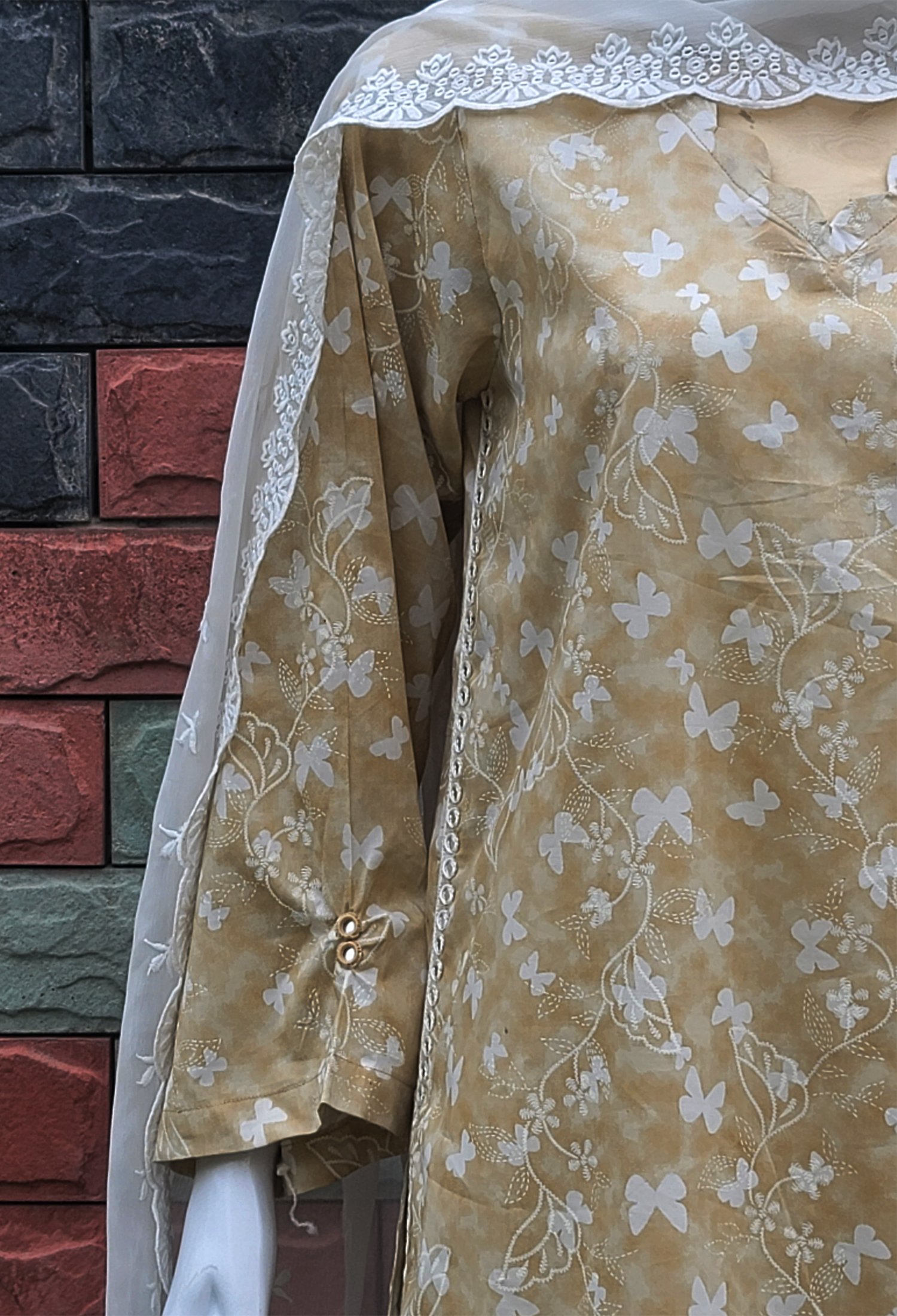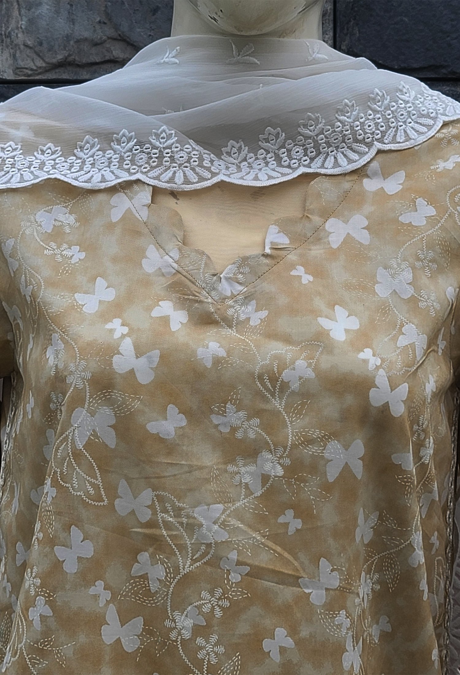 1 Piece Beautiful White Butterfly Printed Shirt, Full Sleeves, Calf length.