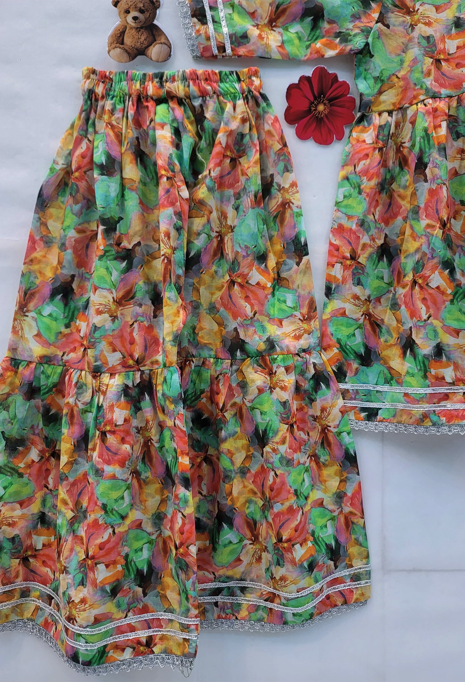 Multicolor Gharara Silver Lace Kids
