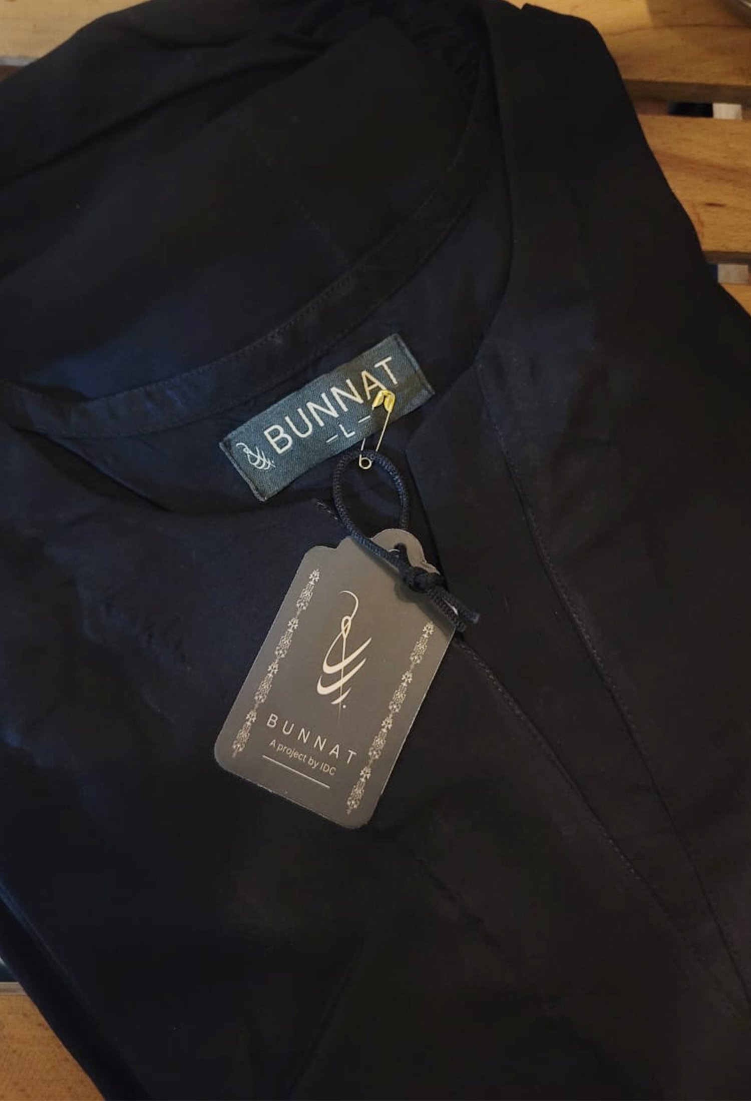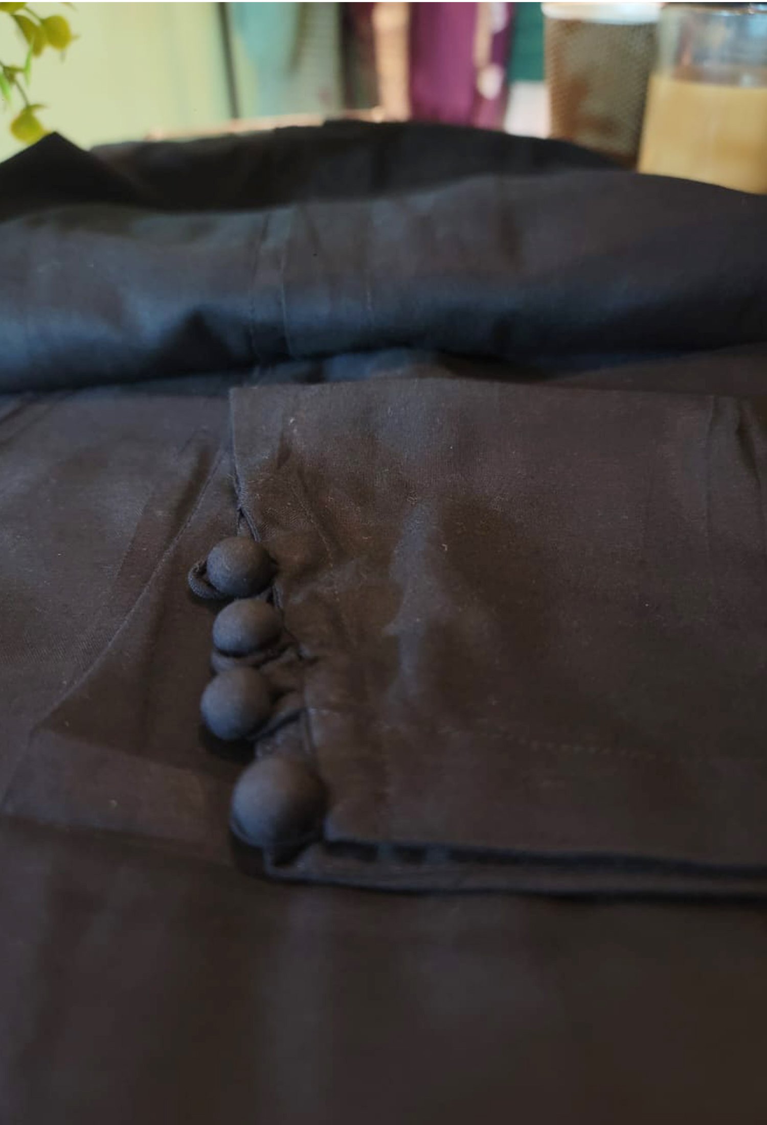 2 pc Solid Black Shirt with trouser, V neck, Full sleeves with buttons.