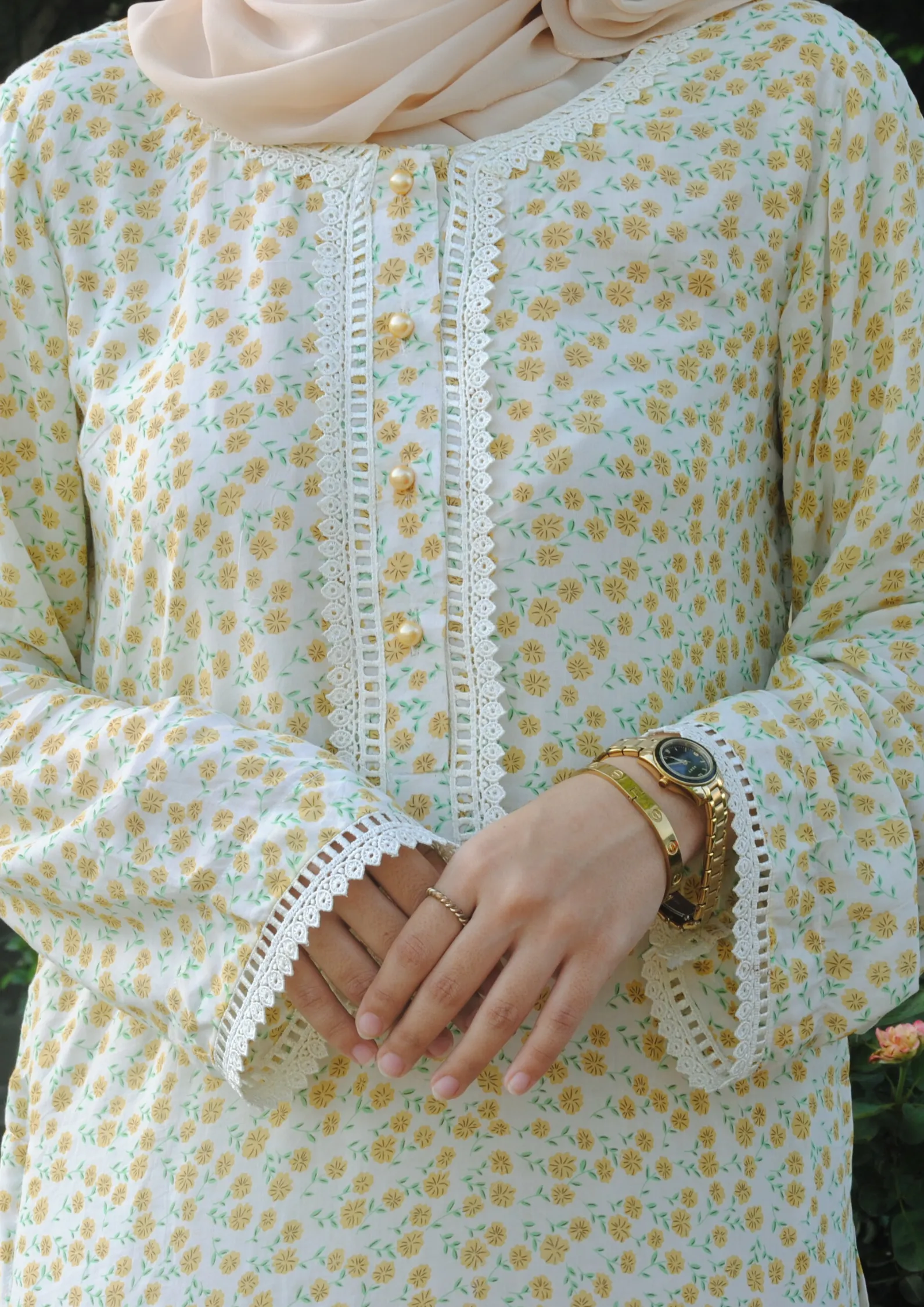 Discover the beautiful craftsmanship and timeless charm of our Quetta linen dress, where the soft cream color meets bright yellow flowers. Upgrade your fashion game with this elegant dress that blends traditional quality with modern style. Visit us at our shop on Shane Haqi Road, Islamabad, or shop online to make this stunning dress yours today!